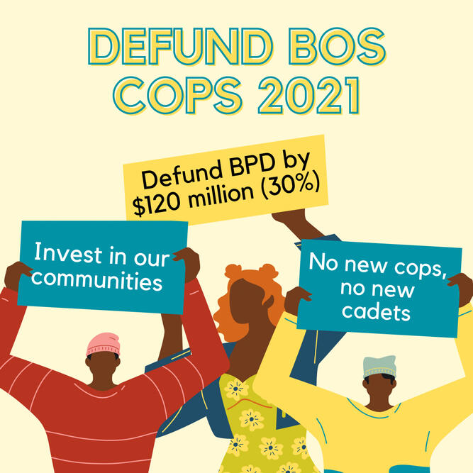 We are fighting for a budget that reflects our values, invests in Black and brown communities, and supports full and vibrant lives for all of Boston’s residents. Our communities are united in our vision and commitment to building a city where we all have what we need to thrive.To achieve our vision, we demand that Mayor Kim Janey and Boston City Councilors:- Divest $120 million from the Boston Police budget, including a real cap on overtime spending.